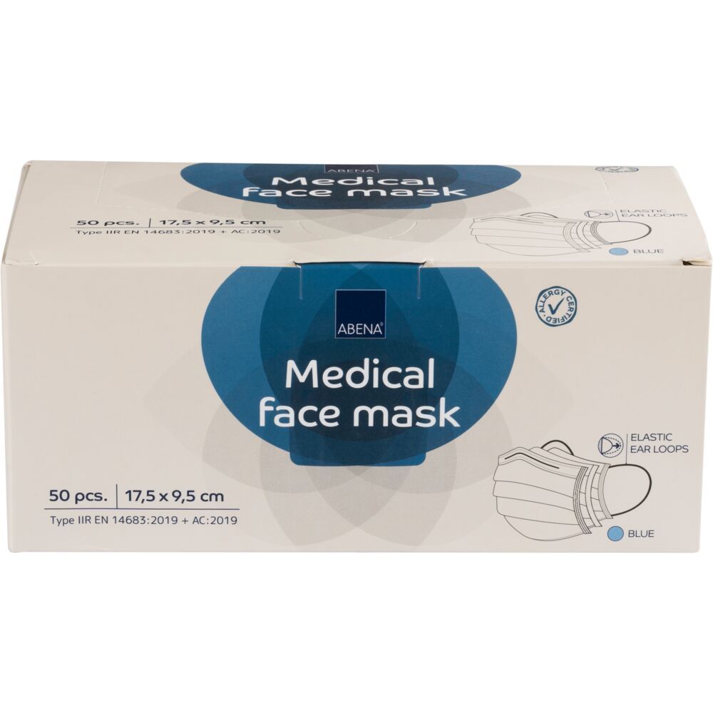 Abena Excellent mundbind med øreelastik blå, 3-lags, type IIR, 50 stk.