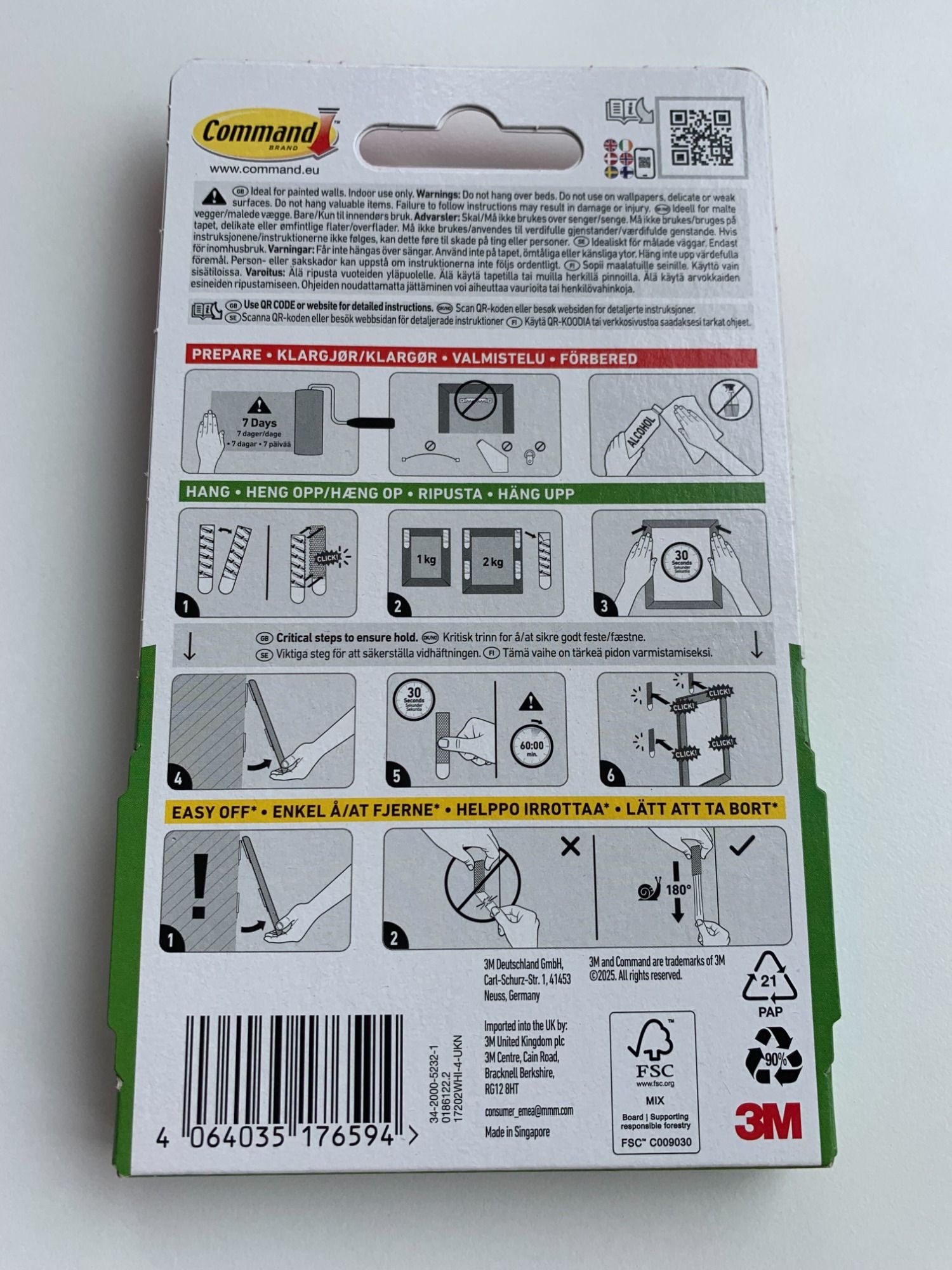 Med 3M´s Command løsning slipper du for at skulle have fat i boremaskine, søm og skruer, når du skal have hængt billeder op på væggen. I stedet for består løsningen af utrolige stærke stirps, der nemt trykkes fast på væggen for derefter at blive trykket fast med billedrammen. Stripsene kan fjernes fra væggen igen uden at efterlade nogen former for spor.