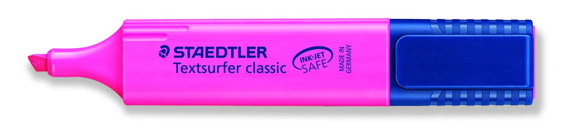 Overstregningspen Textsurfer Classic til overstregning på papir, fax, inkjet print og kopier. Inkjet Safe blæk sikrer at man ikke udtværer inkjet udskrifter og håndskrevne tekster ved enkel overstregning. Hurtigtørrende. Twisthætte for nem åbning. Ultrablød bred spids ca. 1 - 5 mm. Genopfyldelig. Rosa. Made in Germany