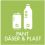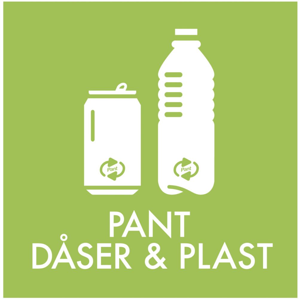 Grønt klistermærke med teksten "PANT DÅSER & PLAST". Anvendes til sortering af pant.